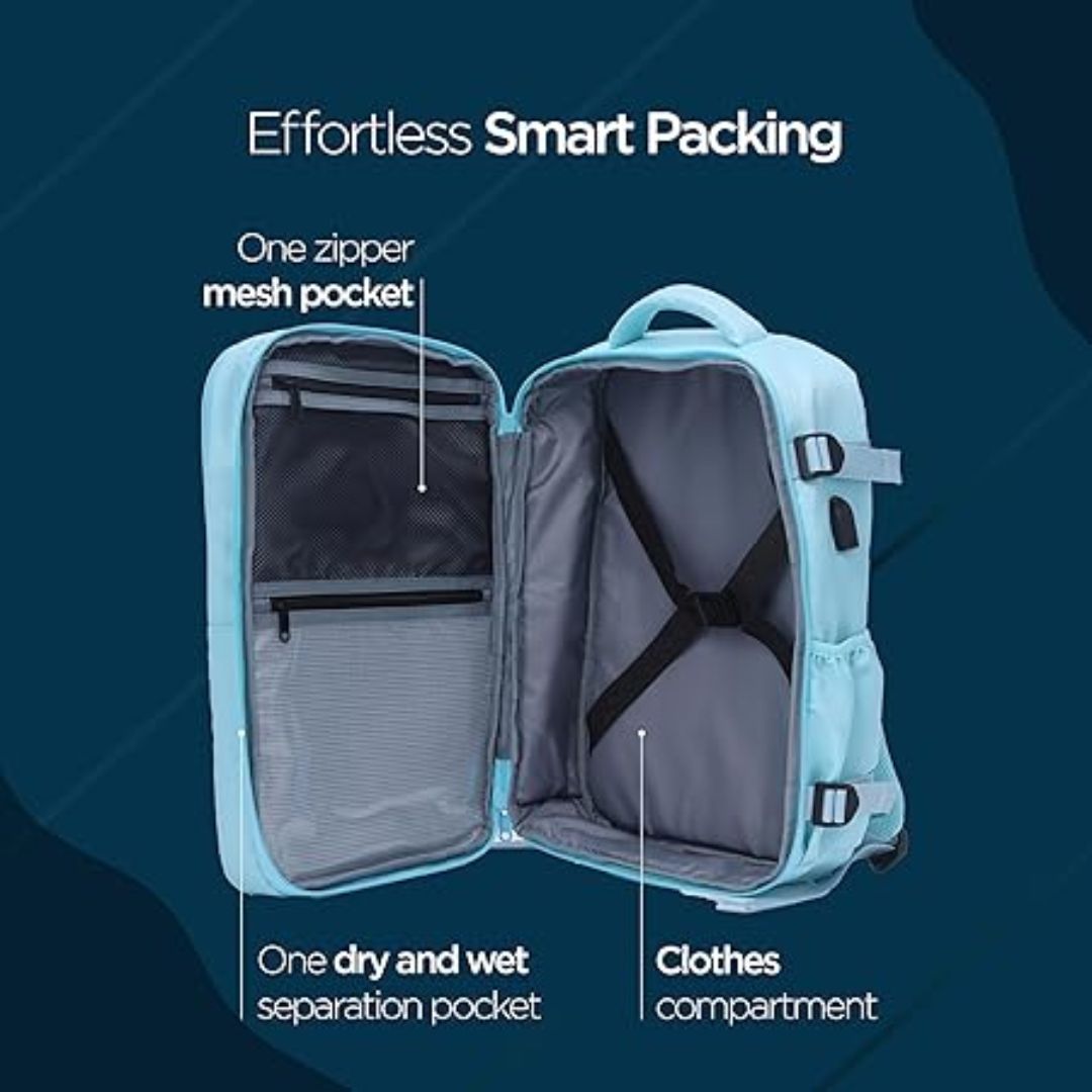 Keep everything in place with a mesh zip pocket, a compartment for wet and dry items, and a dedicated section for clothes, making packing simple and tidy.