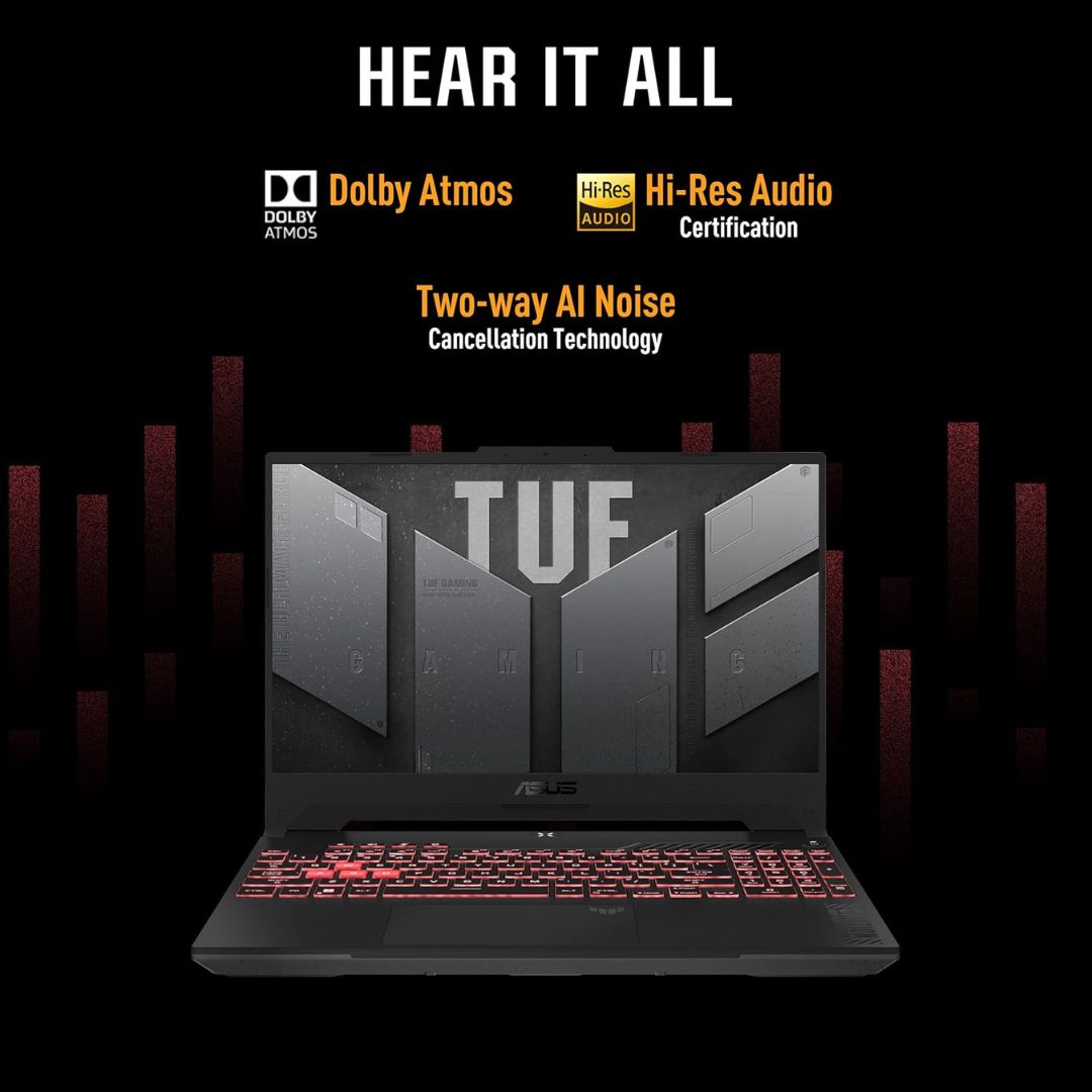 the TUF F15 combines military-grade durability, RGB backlit keyboard, and Dolby Atmos audio to enhance your gaming experience. Preloaded with Windows 11 Home, Office Home & Student 2021, and McAfee 1-Year Protection, this 2.2 Kg powerhouse is ready for both competitive gaming and heavy professional workloads.