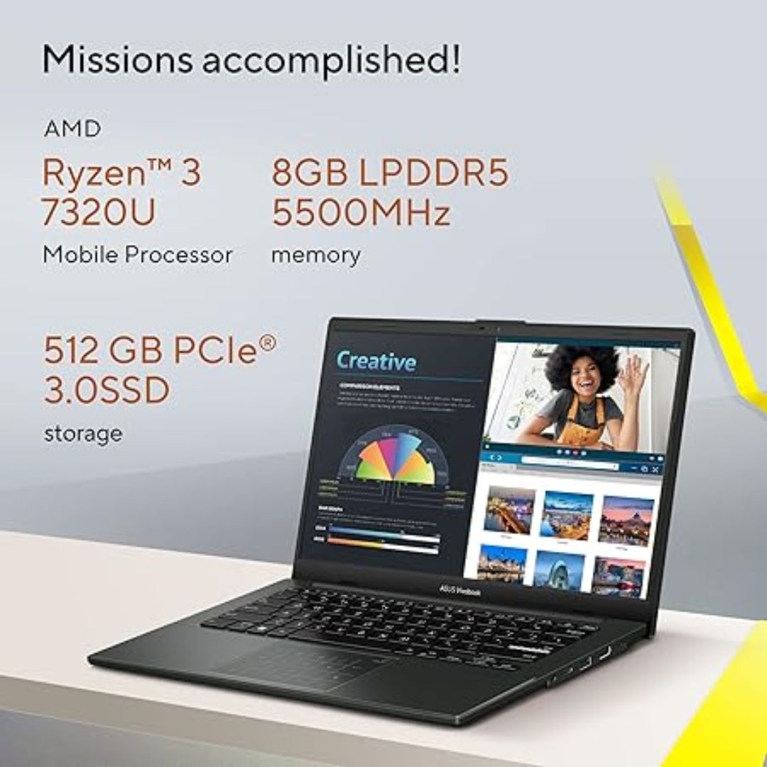 Vivobook Go 14 is powered by an AMD Ryzen 7000-U Series processor, LPDDR5 memory, and PCIe SSD storage to help you complete all your productivity missions