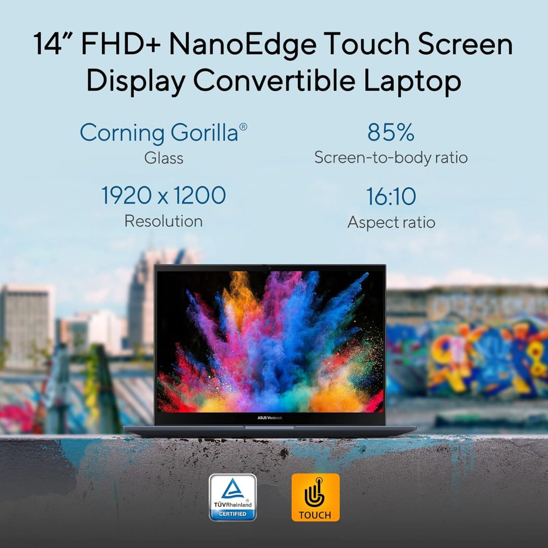 Pre-installed with Windows 11 Home, Office Home 2024, and M365 Basic (1 Year), the Vivobook S14 Flip is productivity-ready from day one. Ideal for students, professionals, and creators who want both performance and flexibility in a compact form.