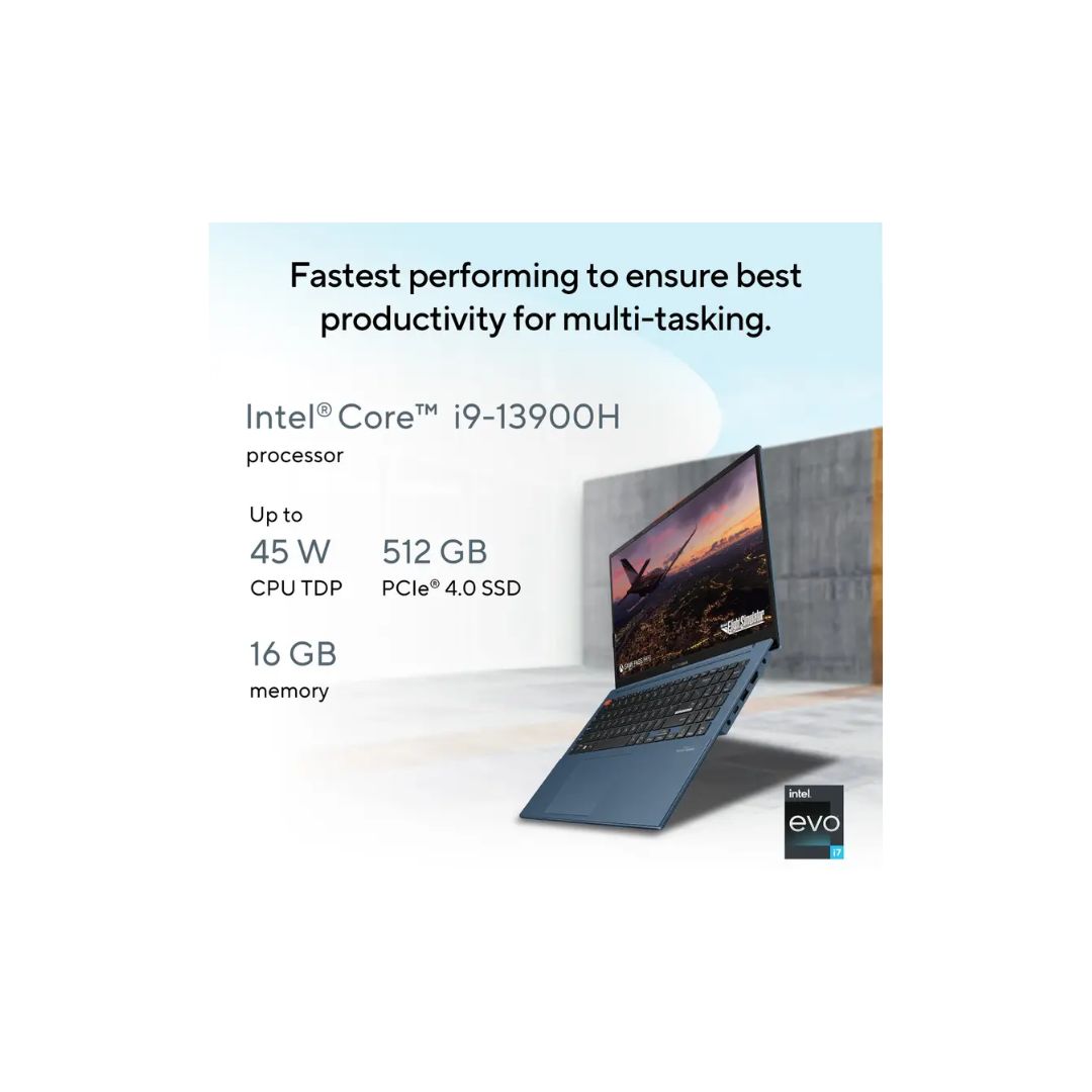 The ASUS Vivobook S15 OLED is a premium thin-and-light laptop that delivers the perfect balance of performance, portability, and elegance. Powered by the 13th Gen Intel Core i9-13900H processor, it’s built for power users who demand seamless multitasking and reliable performance.