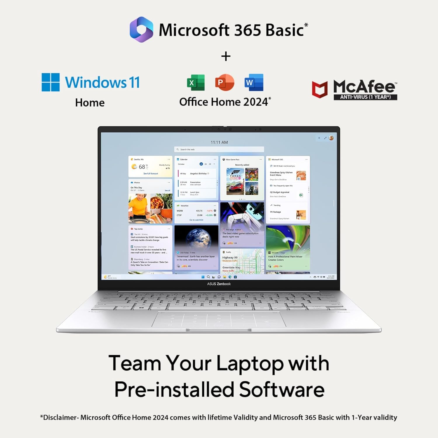 A6. Yes, it includes Office Home 2024 (Lifetime) and Microsoft 365 Basic (1 Year, 100GB Cloud).
