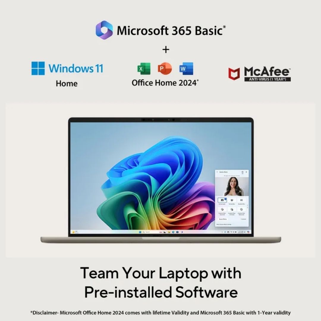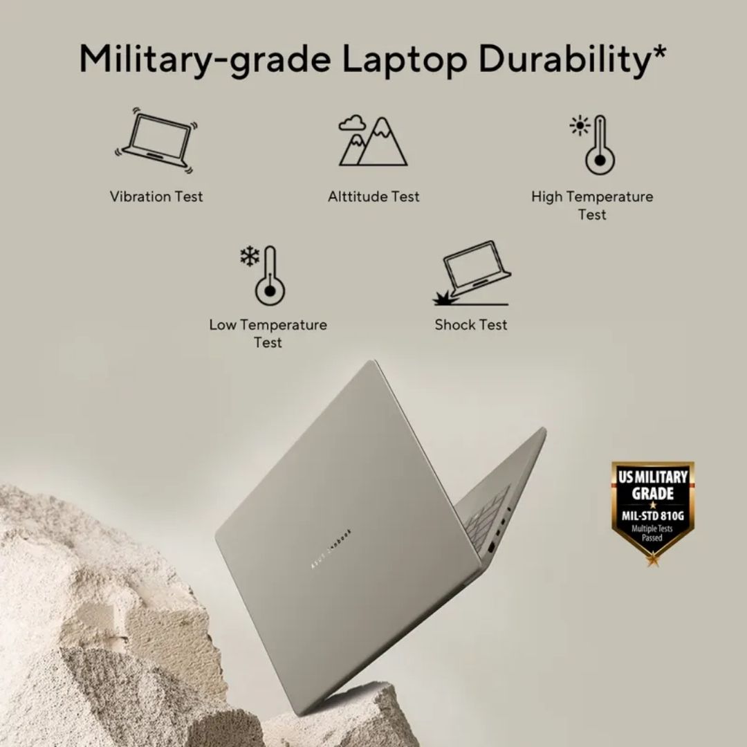 Built with Ceraluminum™ material, the chassis offers premium durability with scratch resistance, shock resistance, and smudge-free usability. The 70Wh battery ensures long-lasting productivity, while the AI-enhanced camera, Dolby Atmos sound, and advanced cooling system deliver a premium user experience. With Wi-Fi 7 connectivity, comprehensive I/O ports, Windows 11 Home, Office Home 2024, and M365 Basic (1 Year), the Zenbook A14 redefines portable AI computing.