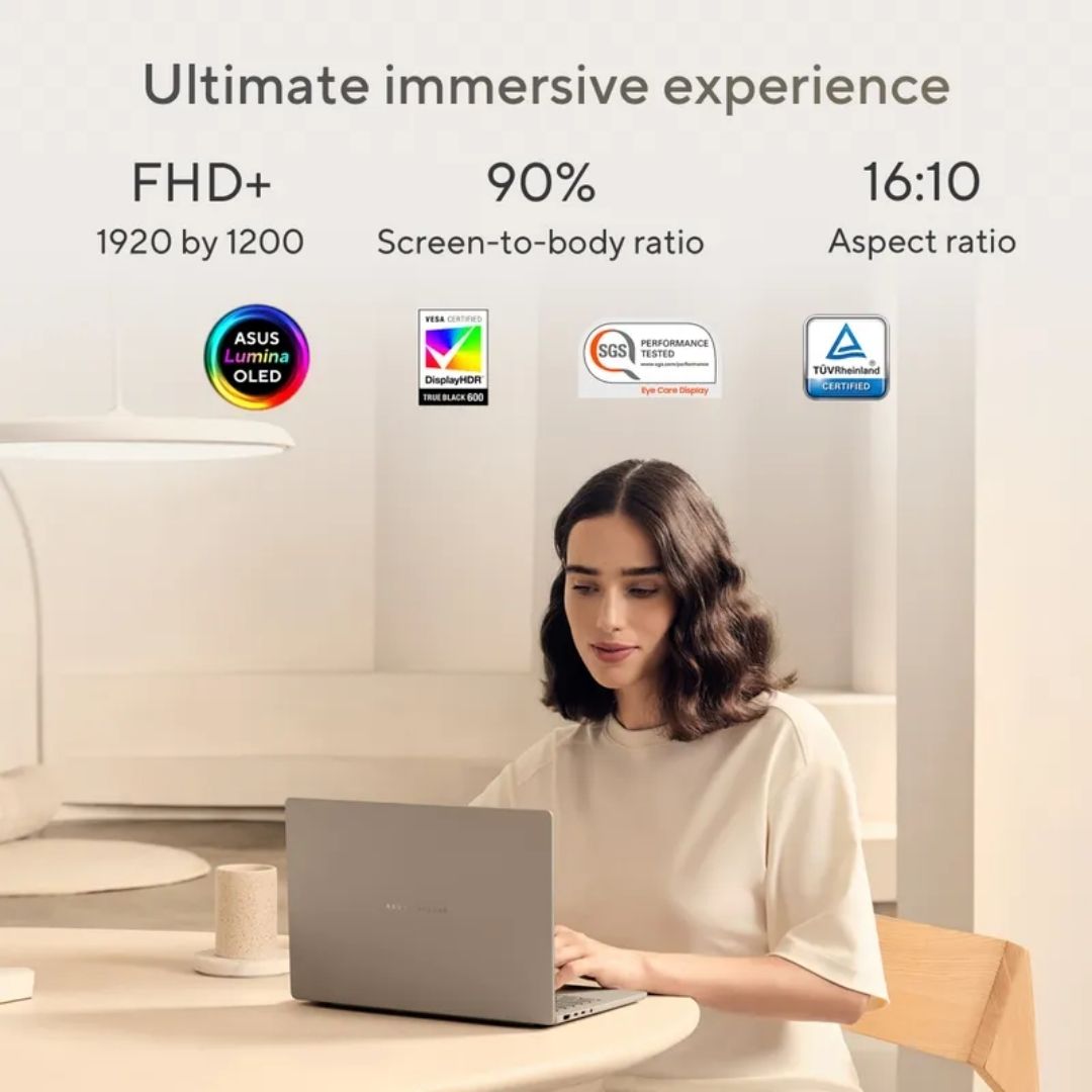 The ASUS Zenbook A14 OLED (UX3407RA-QD054WS) is an ultra-lightweight AI-powered laptop designed for modern professionals. Weighing under 1 kg, it features the Snapdragon® X Elite X1E 78 100 processor with a 45 TOPS NPU, delivering powerful AI performance and enhanced Copilot+ features. Its 14-inch OLED WUXGA display provides vivid visuals with HDR True Black 600 certification and 100% DCI-P3 color gamut for a stunning experience.