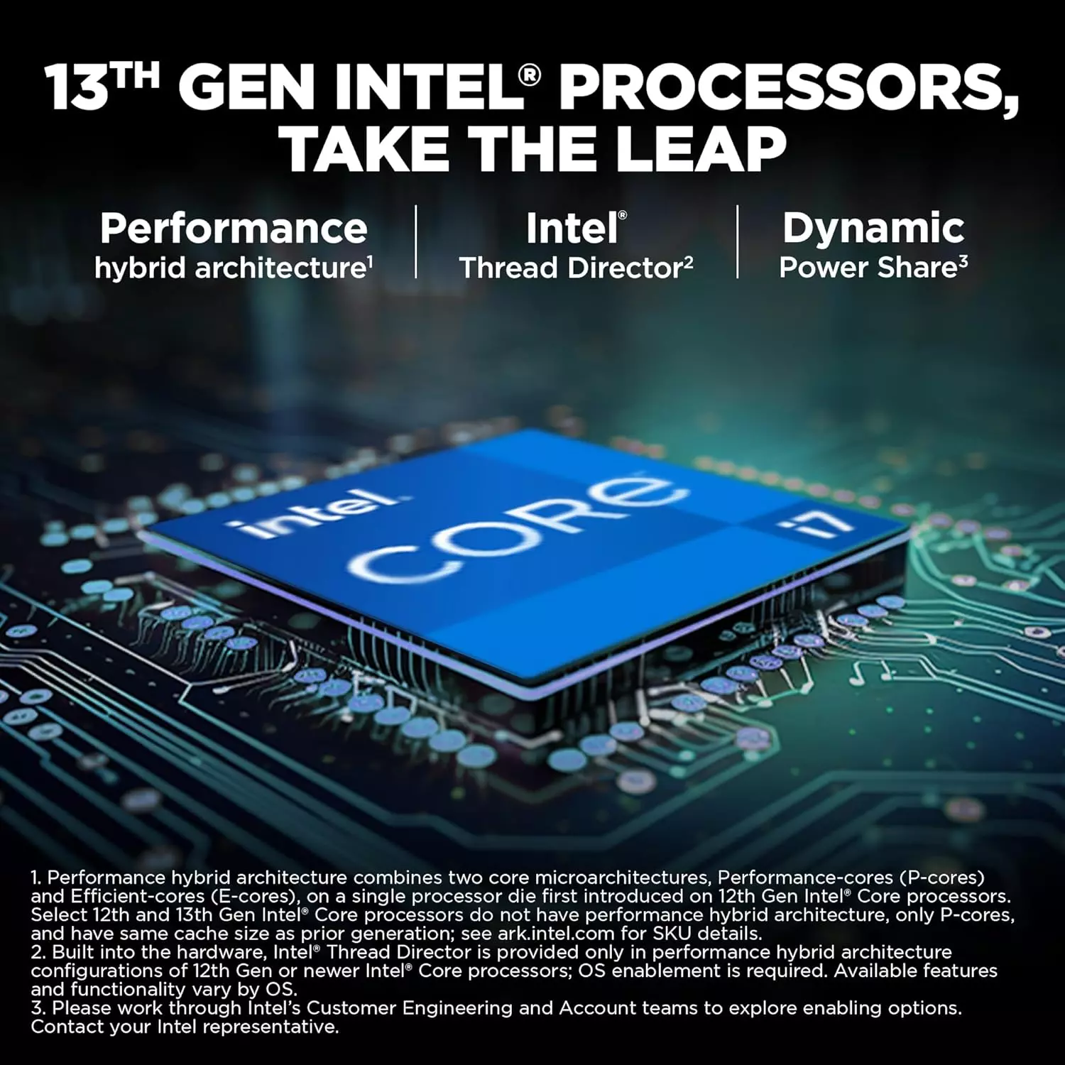 It has 16GB DDR5 RAM and a 1TB PCIe NVMe SSD for speed and ample storage.