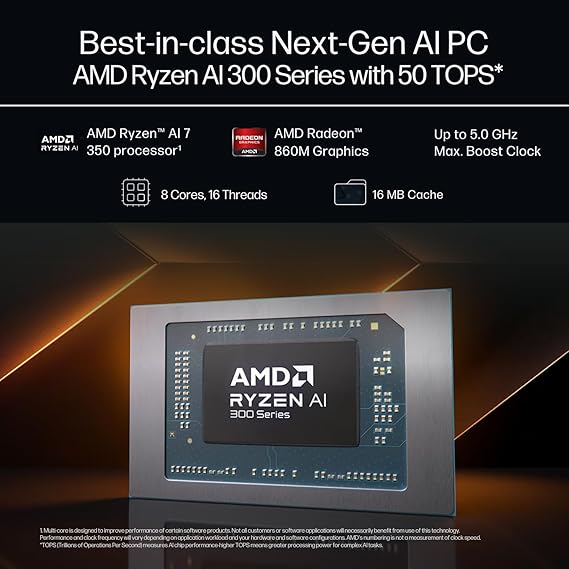 Processor | AMD Ryzen AI 7 350 with 50 TOPS AI performance |