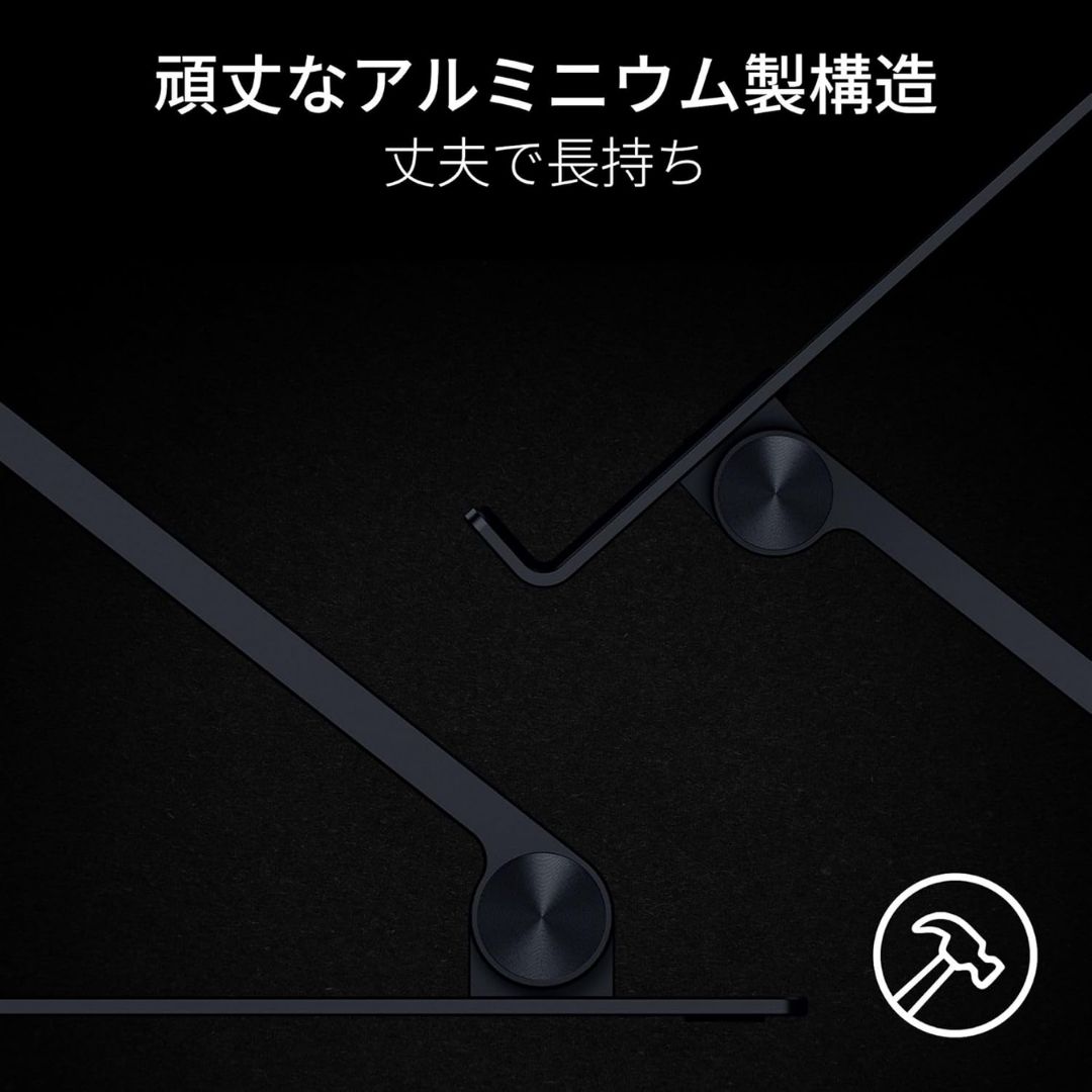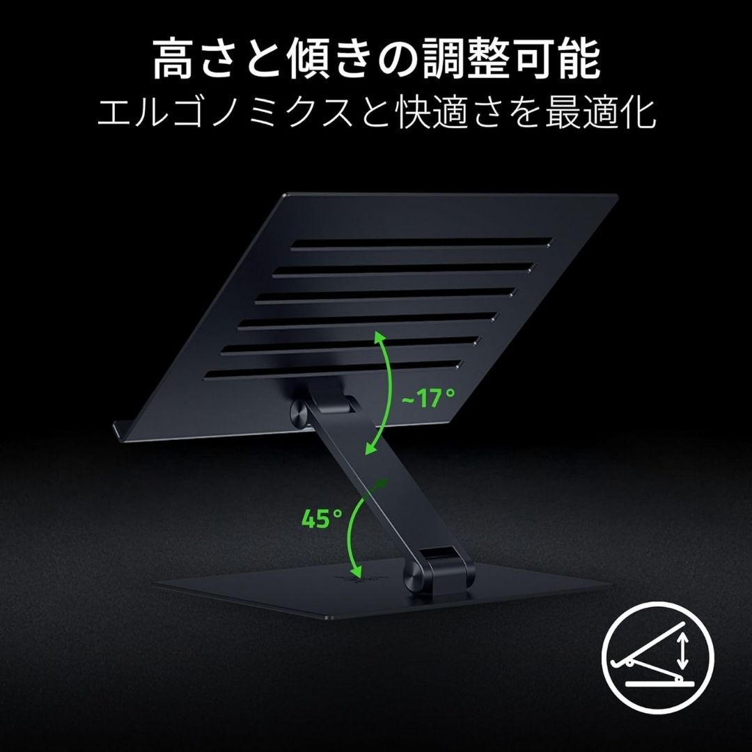 The Razer Adjustable Laptop Stand is engineered for enhanced comfort, productivity, and gameplay. Featuring two points of articulation, it allows you to fine-tune your laptop’s angle and height to match your ideal viewing posture—whether sitting or standing. Constructed from premium anodized aluminum, it supports laptops up to 18 inches while maintaining a sturdy and sleek profile.