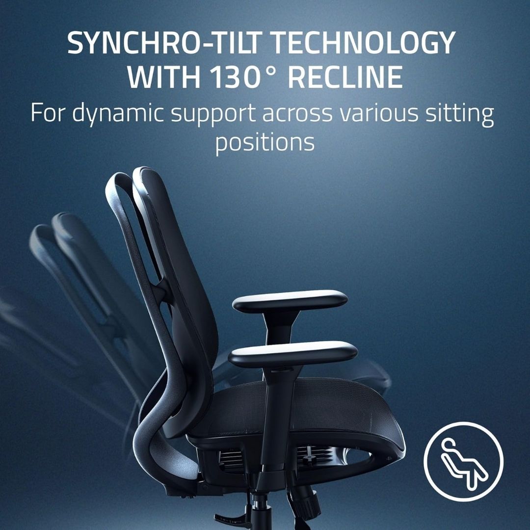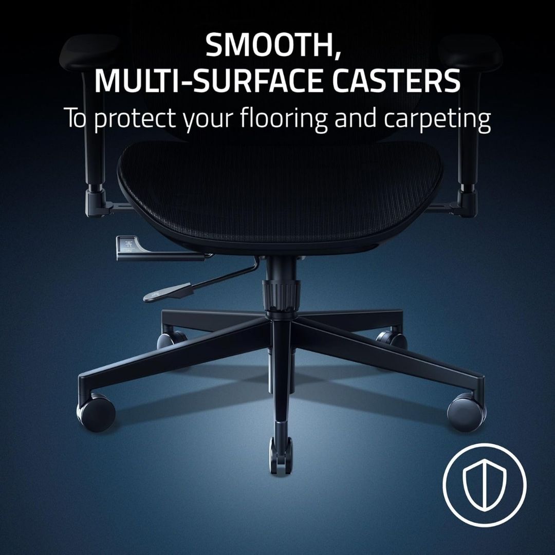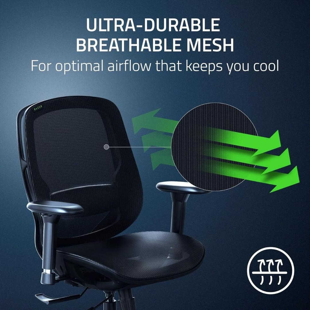 The Razer Fujin Mesh Ergonomic Gaming Chair is designed for serious comfort and long-lasting performance. Its high-tensile breathable mesh allows airflow to keep you cool while gaming or working, while the height-adjustable lumbar support helps maintain natural spine posture. The synchro-tilt mechanism ensures the chair moves with your body, offering smooth and balanced recline control.