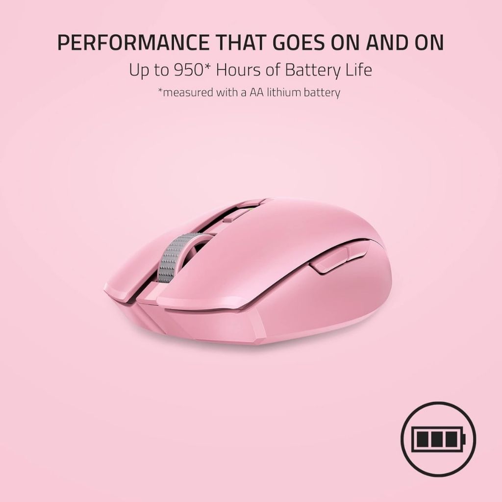 Offering both Razer HyperSpeed Wireless and Bluetooth connectivity, the mouse delivers fast, responsive performance when gaming and exceptional battery efficiency for casual use. With up to 950 hours of battery life, it's built for endurance that lasts for months.