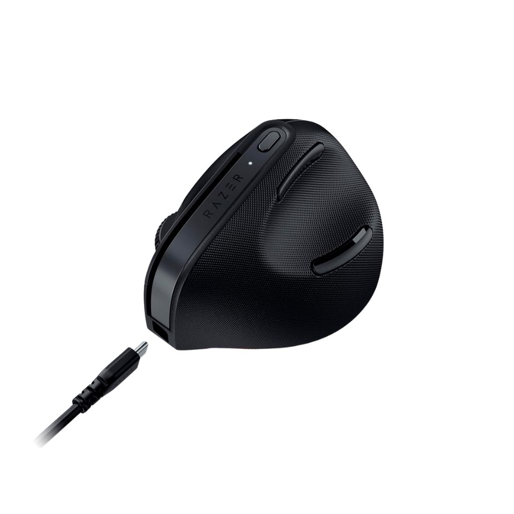 The Razer Pro Click V2 Vertical Wireless Mouse (RZ01-05250100-R3A1) is engineered for professionals who demand comfort, speed, and efficiency. Its ergonomic vertical design supports a natural handshake position to reduce wrist fatigue, making it ideal for long hours of work. With tri-mode connectivity, users can switch seamlessly between Bluetooth, 2.4GHz wireless, or USB-C wired mode depending on their workflow. The mouse features a unique One-Click AI Prompt button, enabling instant access to AI tools for quicker content creation, drafting, or productivity tasks. Equipped with 6 programmable buttons, customizable RGB lighting, and exceptional battery performance, the Pro Click V2 delivers a refined blend of ergonomics and modern productivity features. Perfect for office professionals, creators, coders, and multitaskers.