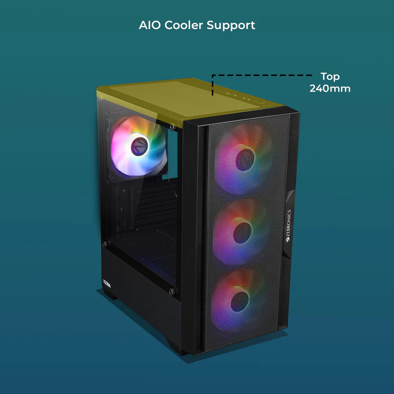 Bring power, style, and performance together with the Zebronics ZEB-CORA Mid-Tower Gaming Cabinet. Designed for gamers who want aesthetics without compromising airflow, ZEB-CORA features a stunning ARGB front panel that delivers eye-catching lighting effects, elevating your setup instantly. The tempered glass side panel allows you to proudly display your gaming hardware, making your PC build stand out with a premium finish.